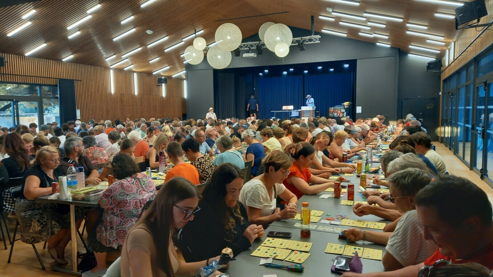 Photo du loto du 21.08.25, salle des Paradis à Ste Marie de Ré. Salle complète, Belle réussite. Au prochain
