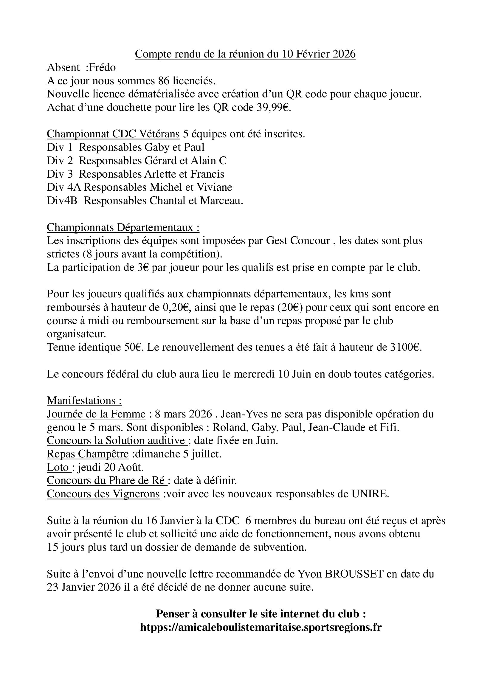 REUNION BUREAU du 10 février 2026